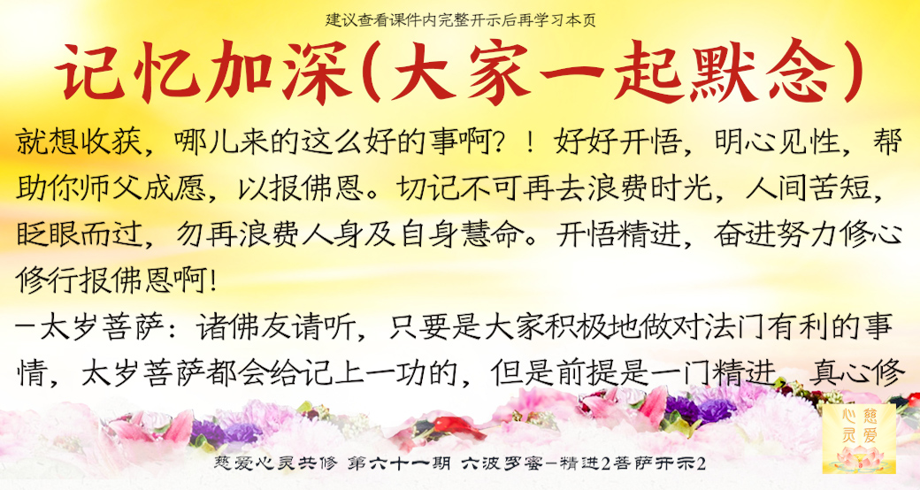 (“心离体相,背尘合觉。大度能度堪为广度,大悲无我方为正觉。即心即佛,舍我其谁。欲成正觉,舍其忘我。我为说法,法身亦同。”)但是师父后来也跟着观世音菩萨弄两句文言文,实际上这几句话就是鼓励大家要精进修行,时不待人啊,时间不等人啊
