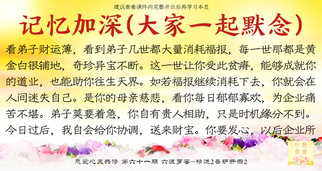 孩子们,你们发心设佛台,师父非常高兴,在设佛台过程中必会有弟子背业。比如,在设佛台过程中,你们不停打电话,不如理;聊天,也不如理。在设佛台过程中最好是不停地念诵经文,因为很多菩萨会提前到场,看到你们在聊天,不精进,菩萨们会不高兴,菩萨喜欢精进的孩子。你们想想看,菩萨下来助缘设佛台,你们在一旁聊天,不但功德不大,而且还会受到惩罚。第二,设佛台前必须给房子的要经者念诵小房子,不然,气场会很不好,有些师兄会受气场影响。还请你们设佛台前注意,现在不同以往,天时太紧,很多众生需要解脱,我们心灵法门是很多众生解脱的最快途径。为什么有些师兄能明显感受到气场不对?你们修得好的头上都有光。你们想一想,要钱肯定是去找有钱人,是不是?功德还是会有,就是有点不舒服,比如,头晕、头疼、犯困等,每个人的反应都不同。你们发心给他们设上佛台也不得了,你们想一想,给菩萨造庙能一样吗?功德大得不得了。今天来看看你,记住,听话,好好修,师父就来,在人间这些都是假的,你一世一世地在轮回,师父着急呀!一定要好好修呀!不然师父怎么帮你?师父也有私心,我希望能够把你们这些好孩子都带上去,你们一定要好好地修,紧跟师父,不然怎么能帮到你们啊!明白吗?多看《白话佛法》。师父走了。