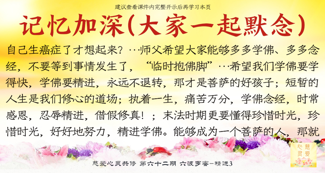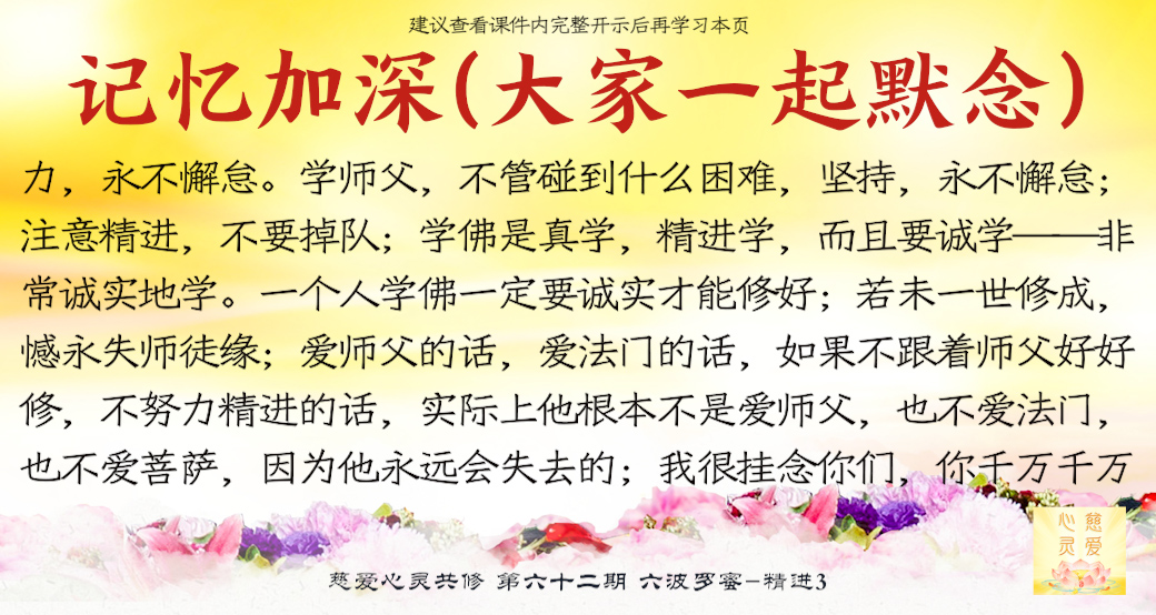 精进努力,永不懈怠。学师父,不管碰到什么困难,坚持,永不懈怠