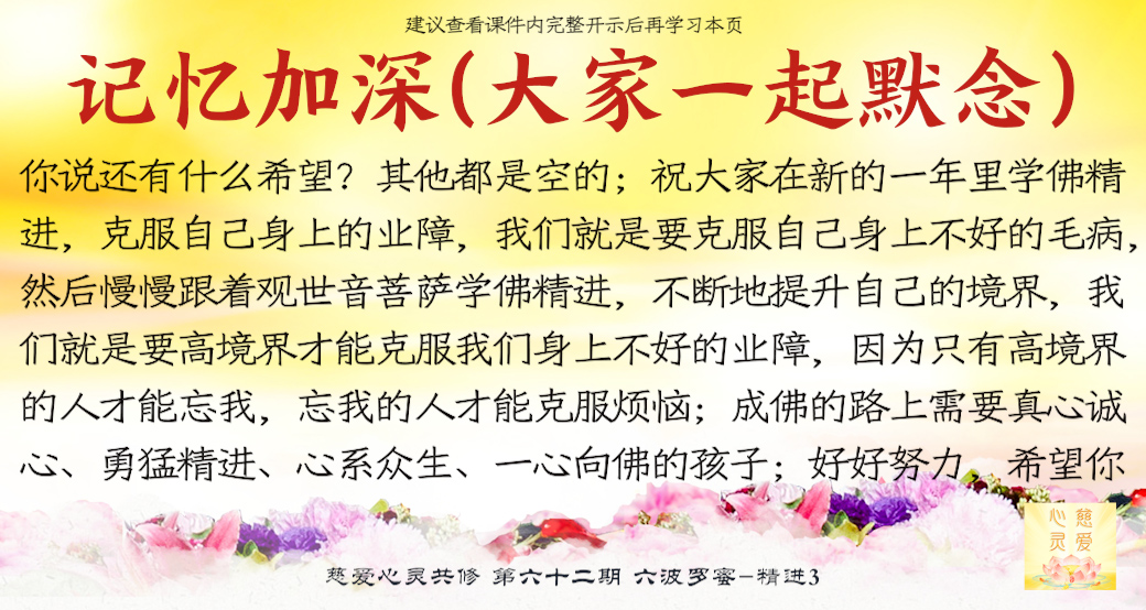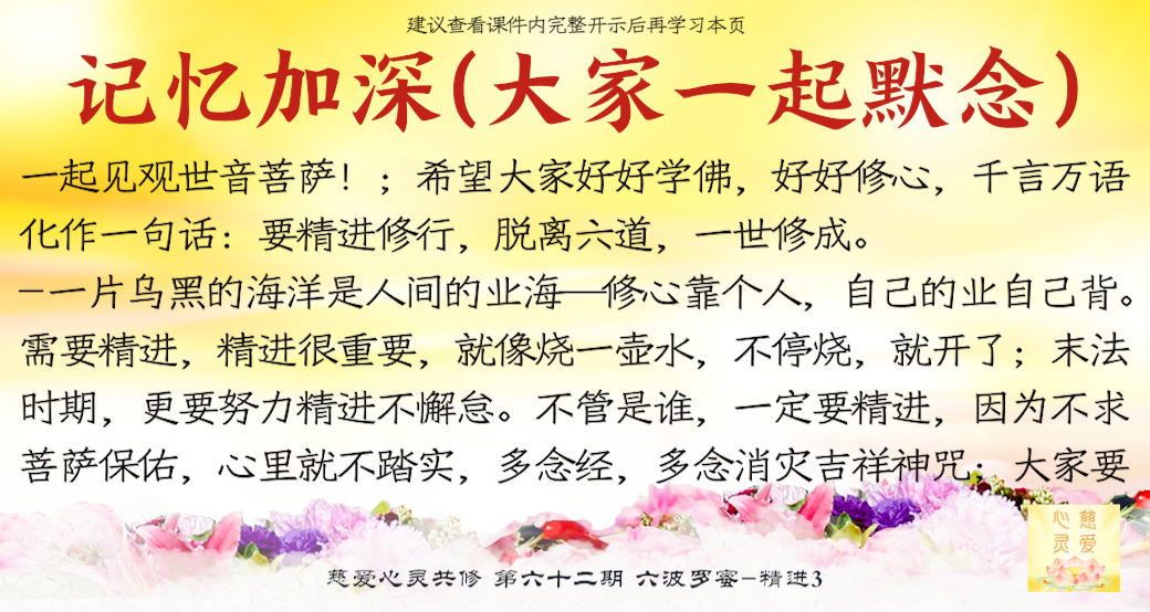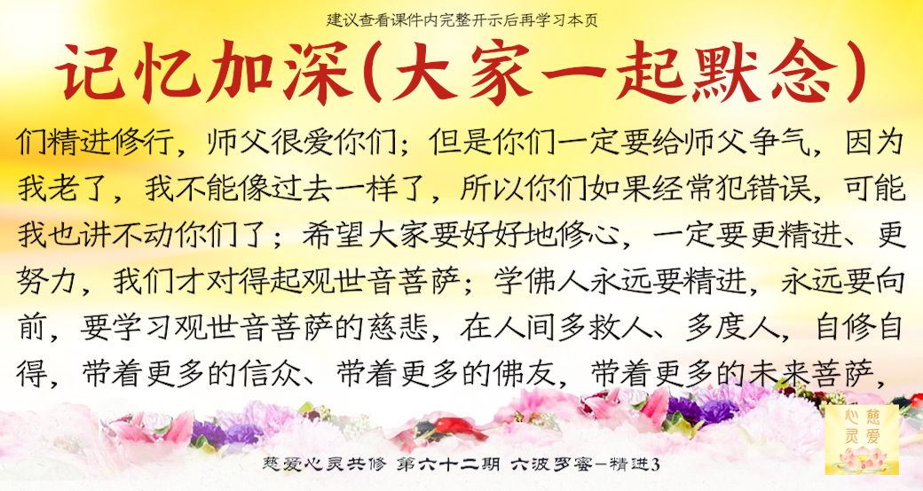 虽然一个月或两个月才见你们一次,但是希望你们一定要好好地修心念经,一定要懂得这个世界真的天时不多了,好好磕头念经修心,抓紧时间跟自己的生命,因为我们的生命真的随时随地会流失,随时会走掉。师父没什么话要再跟大家讲,希望大家平安,好好念经修行。自己的事情再大都是小事情,菩萨的事情再小也是大事情,所以希望大家以菩萨的利益为重。只要想到观世音菩萨,我们要克服身上所有的缺点跟毛病,这样我们才能精进、进步。好好地念经。