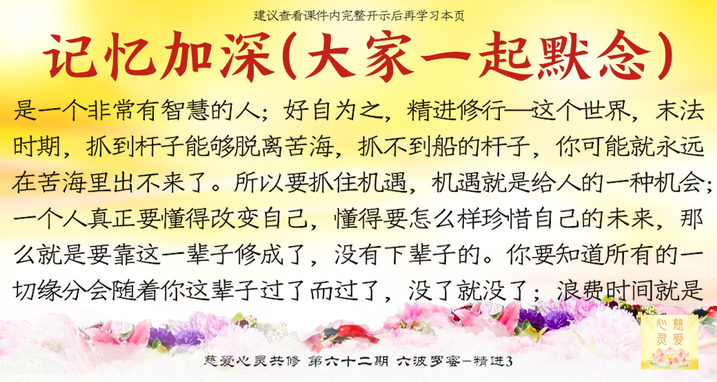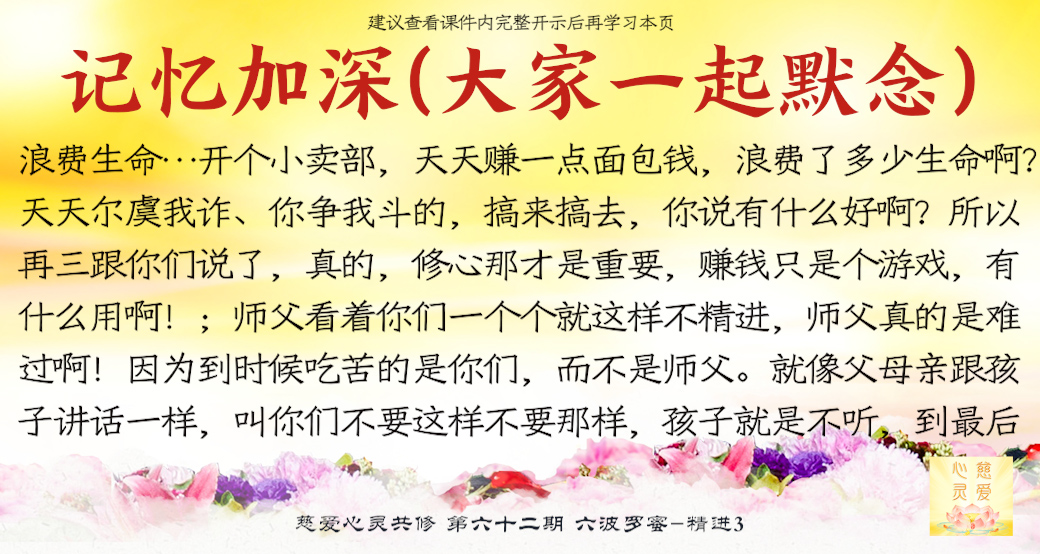 末法时期你们只有精进而且要快,不好好地进步就是倒退。不要有失,要有得啊——得你们的心灵。