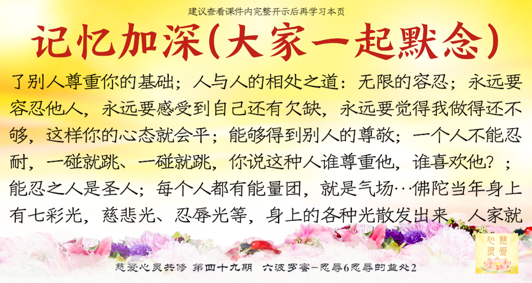 做人我们要懂得精进,要忍耐,要有精进的精神;要懂得一个人受苦受难,实际上就是为了让你理解人生。所以我们学做人要忍耐,要懂得化解。因为看见别人身上有毛病,我们心里都不能忍受、不耐烦,这样你会把自己弄伤、你非但救不了别人,而且自己还在倒退。