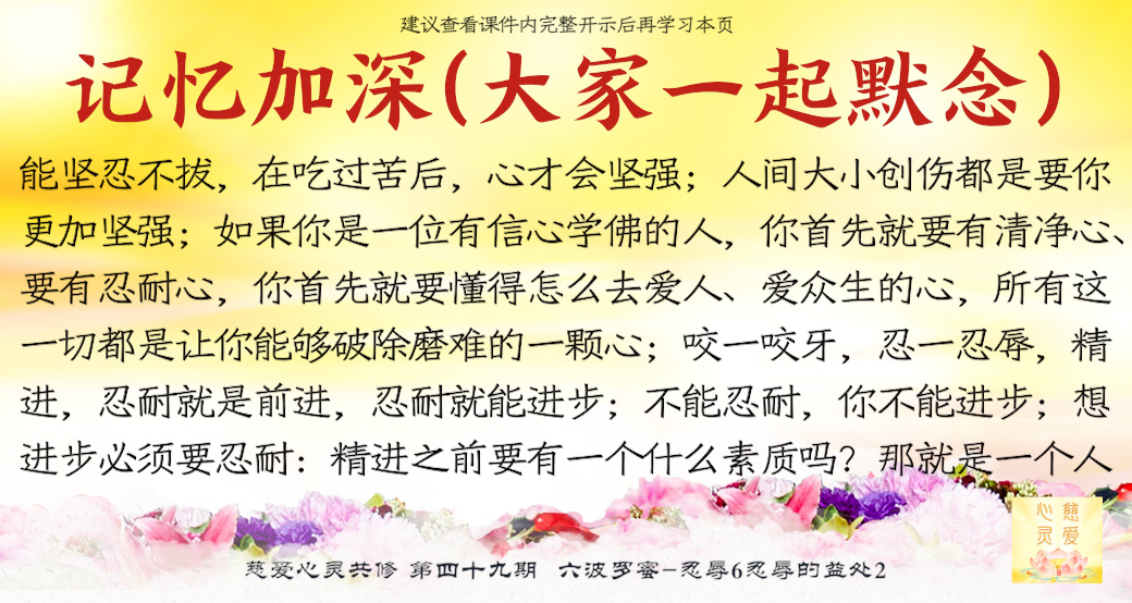 我们要学会忍耐,我们要学会懂得因果,我们要懂得人在困难面前永远不要退却,我们碰到事情永远要好好地保护好自己的修为。….如果你是一位有信心学佛的人,你首先就要有清净心、要有忍耐心,你首先就要懂得怎么去爱人、爱众生的心,所有这一切都是让你能够破除磨难的一颗心。