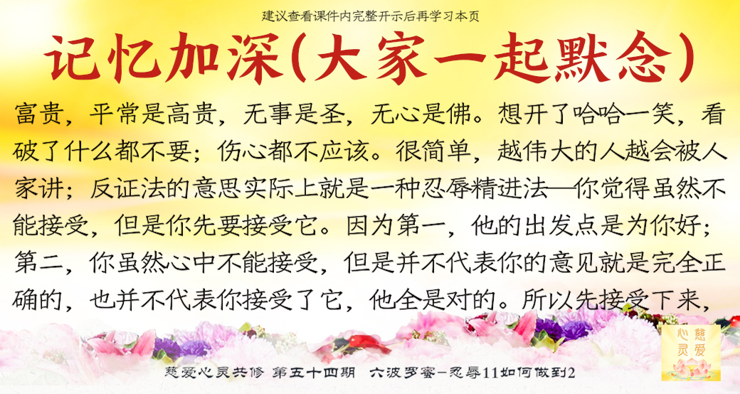 比方说,人家在讲你,你怎么理解很重要,你觉得虽然不能接受,但是你先要接受它。因为第一,他的出发点是为你好;第二,你虽然心中不能接受,但是并不代表你的意见就是完全正确的,也并不代表你接受了它,他全是对的。所以先接受下来,慢慢再去伪存真、去粗取精。这样的话,你分析,把不好的东西拿掉,让自己能够接受改变的东西进入七识田中,进入末那识