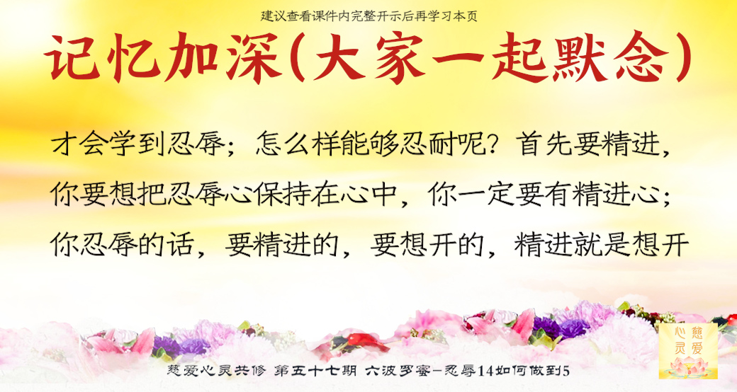 大家来了就是想好好修,修到一定的程度可以使家里好,家里好了你不是也好了吗?修心苦啊,也要忍辱。很多老公说“你不要去了,听什么东西啊?有什么用啊?”他造口业了,你要不要忍辱?忍辱就是要忍全方面的辱。比如修佛中碰到的困难,人家讲你、骂你……人家讲你不好,你都要忍耐。你心中知道我有道理,有观世音菩萨救我,我已经得到益处了,我好了。人家讲坏话你也不要顶撞,你要忍耐。你们有些人,先生还没开悟,太太还没开悟,这就叫果。因为你们的因种得不好,因为自己的言语举止不像一个修心修佛的人,让他就不相信你们会修得好。